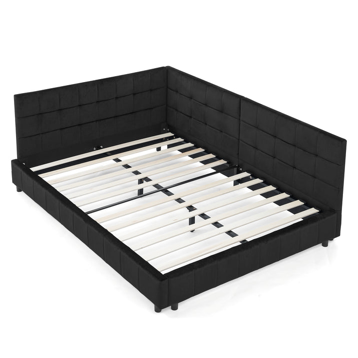 Mid-Century Full Size Upholstered Tufted Bed Frame with Comfortable Backrest and Armrests, Velvet, Black
