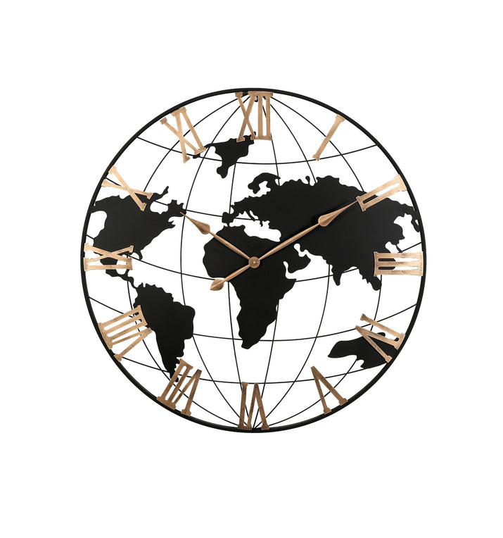 36 inch metal frame clock is not only a functional and powerful time display tool, but also a decorative piece with artistic value. Its handmade decorative artwork features, golden vintage Roman numerals, aesthetic world map elements, and thoughtful hands accessories design make it a highlight in the home space, showing the owner's attitude and taste for quality of life and the pursuit of aesthetics.
