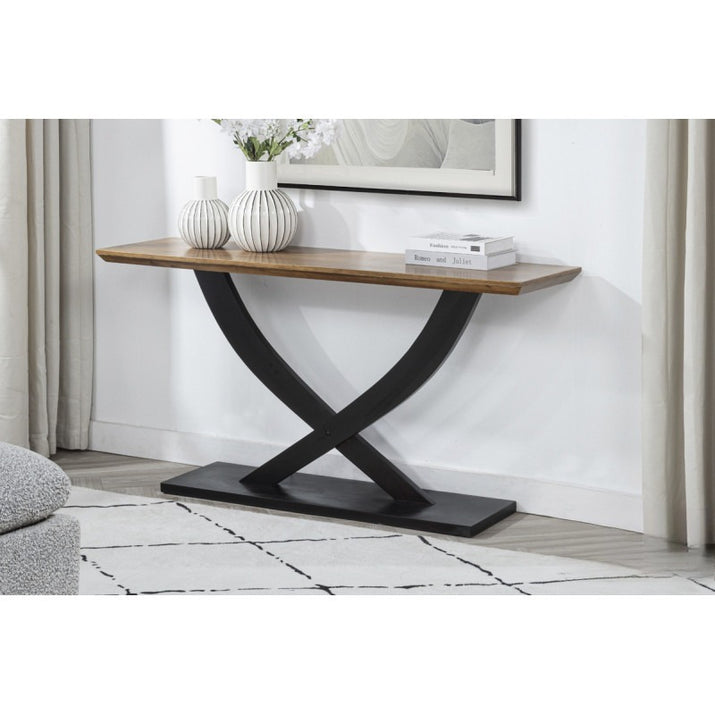 Living Room Wooden Console Table, Contemporary Style Sofa Table, Entryway Accent Table with Cross Legs Design, Natural/Espresso